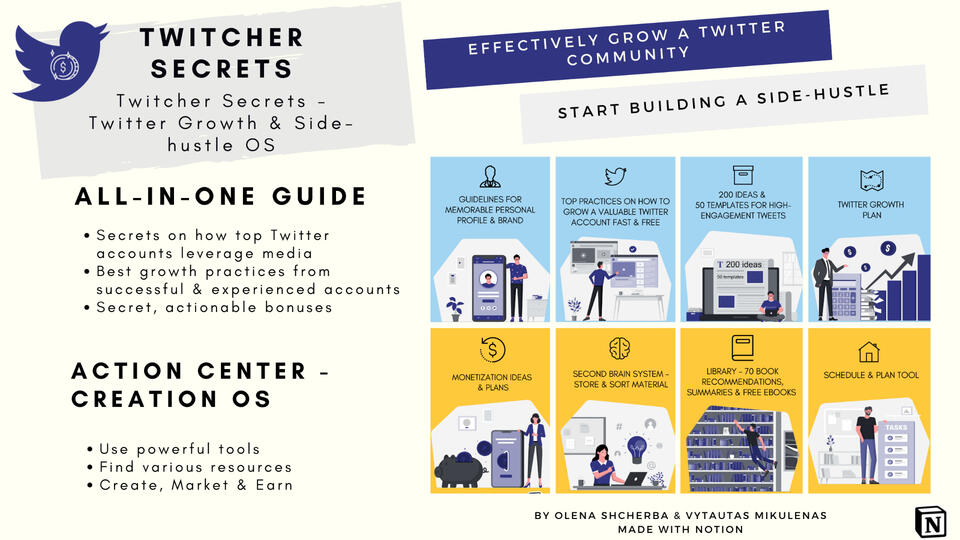 Twitcher Secrets is an all-in-one guide, tool, and resource collection that will show you how to build a side-hustle by leveraging Twitter- Newly launched on November 2021